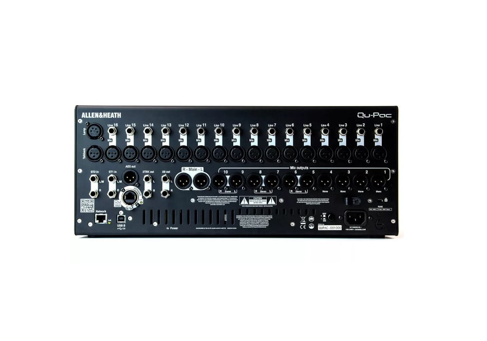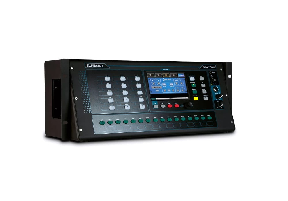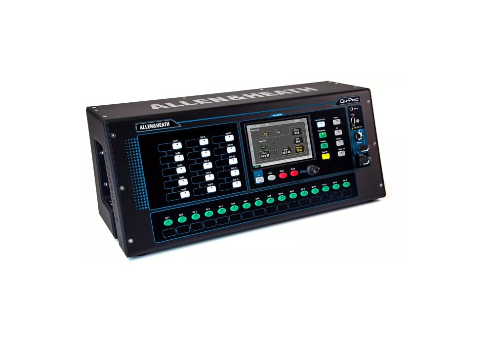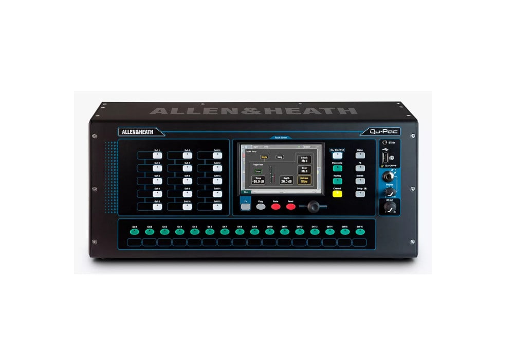 Allen & Heath Qu-Pac – цифровой микшерный пульт с 16 предусилителями AnalogiQ, 5 ARM процессорами. Микшер оснащен модулем эффектов iLive, сенсорным экраном, мультитрековым USB рекордером. В функционале также порт dSnake, USB аудио стриминг и управление через приложение на iPad.