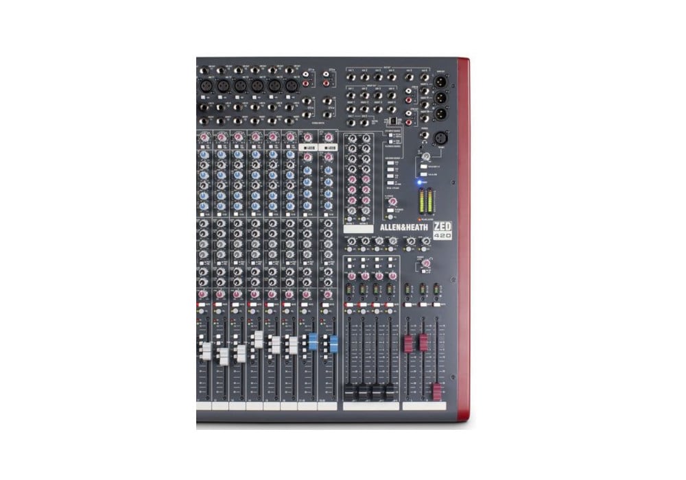 Allen Heath ZED2042 — аналоговый микшерный пульт на 16 каналов моно + 2 стерео (+2 дополнительных стерео на LR), 6 AUX (2pre+2post+2pre/post), 4 подгруппы, Insert (mono&GRP&LRM), Direct Output (моновходы). Микшер имеет 4-х полосный параметрик, матрикс 7 х 2, USB посыл/возврат, 100-мм фейдера, встроенный блок питания.