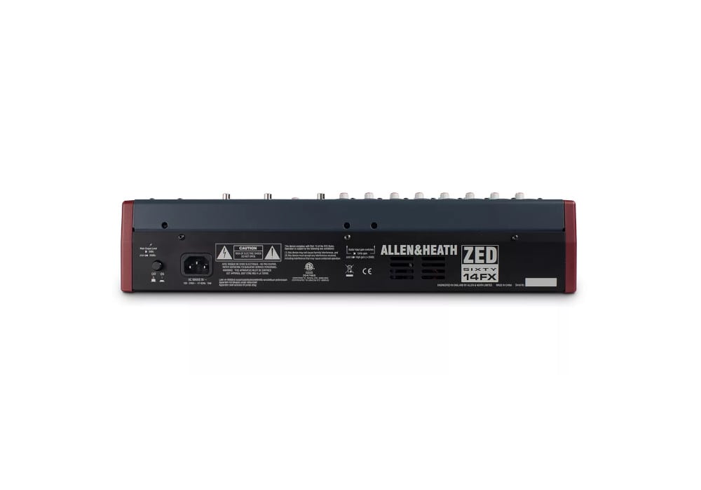 ZED60-14FX оснастили интерфейсом USB, с помощью которого можно выполнять запись стерео. Пульт имеет встроенный цифровой процессор эффектов с 16 пресетами. Кроме того, есть основные стерео выходы на высококачественных разъемах XLR, мониторная секция с выходами для наушников и акустических систем.