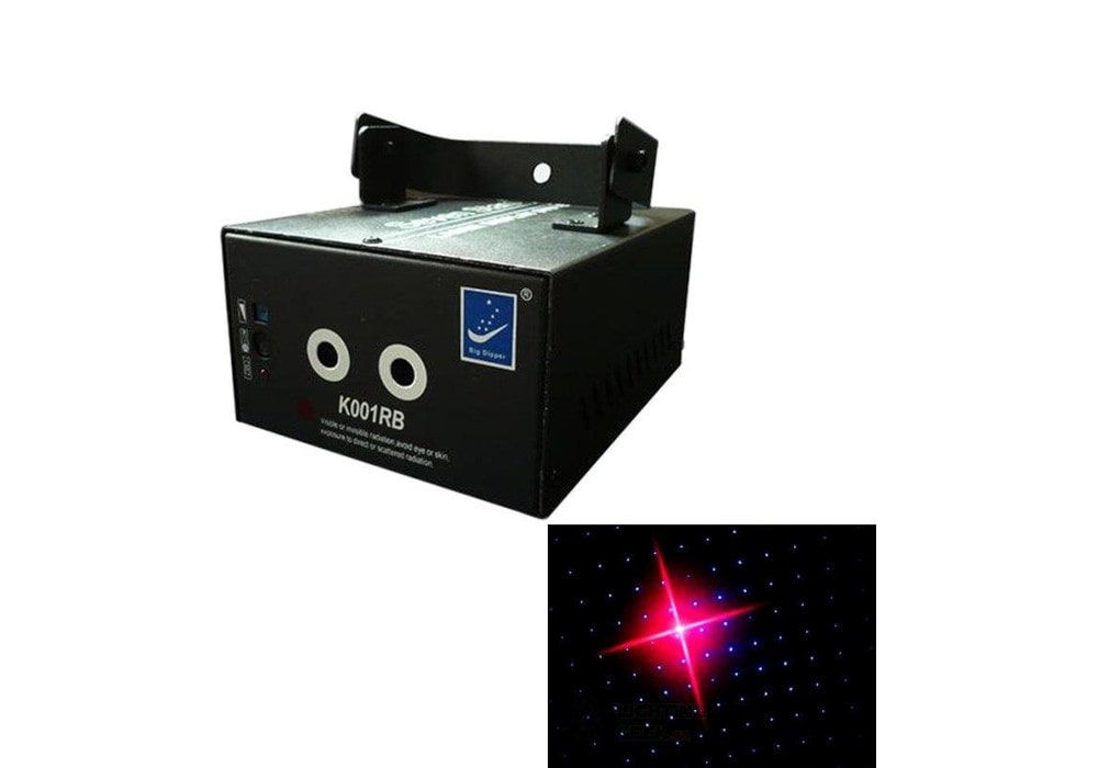 Big Dipper K001 RB — лазер с диодной накачкой. Цвета — красный 80 мВт и синий 120 мВт. Режимы работы: авто, звуковая активация.