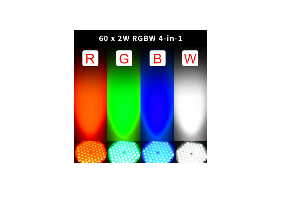 - Источник света: 60 х 2 Вт 4 в 1 (RGBW)