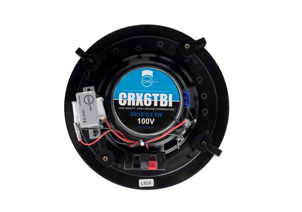 CVGaudio CRX6TBL – двухполосный потолочный громкоговоритель из среднеценовой линейки акустических систем CRX business line. Громкоговоритель выполнен в фирменном стиле, имеет компактные габариты и маленький вес.
