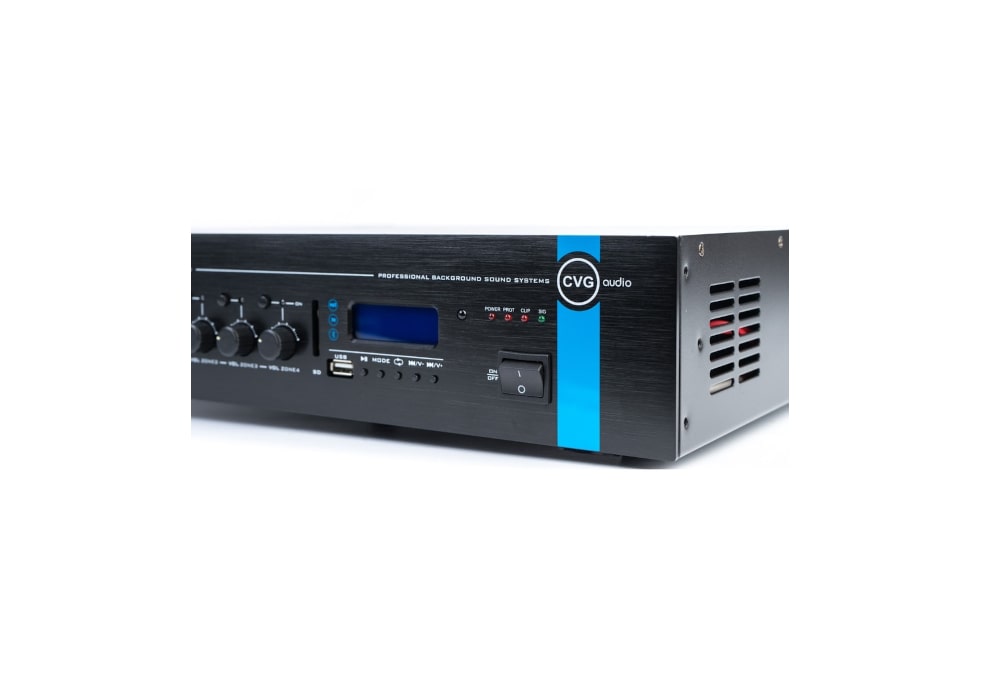 CVGaudio M-243Tmz — профессиональный микшер-усилитель с четырьмя управляемыми спикерными зонами и встроенным модулем источника сигнала. Это устройство предназначено для организации качественной трансляции фоновой музыки и речевого оповещения в торговых и общественных помещениях. Данная модель обеспечит отличное качество звучания и богатый функционал.