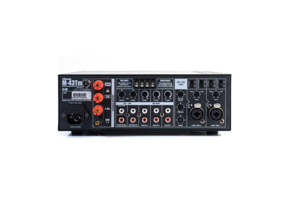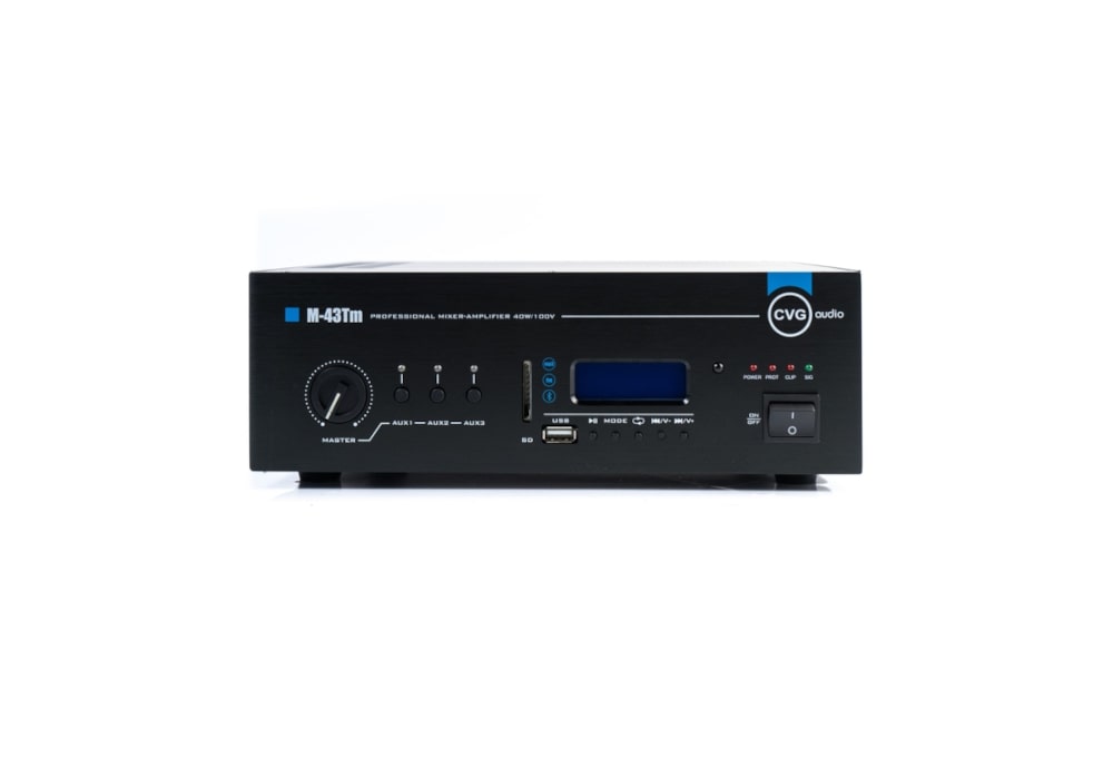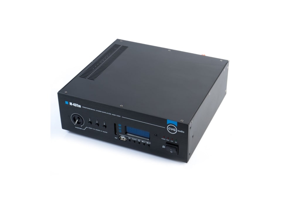 CVGaudio M-43Tm – профессиональный микшер – усилитель с встроенным модулем источника сигнала. Предназначен для организации качественной трансляции фоновой музыки и речевого оповещения в торговых и общественных помещениях. Данная модель обеспечит отличное качество звучания и богатый функционал.