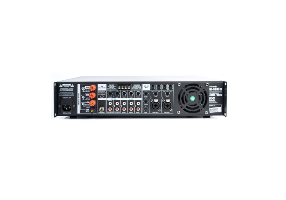 CVGaudio M-483Tm — трансляционный усилитель мощности со встроенным микшером. Данная модель предназначена для организации трансляционных звуковых систем, систем фонового озвучивания или голосовых оповещений.