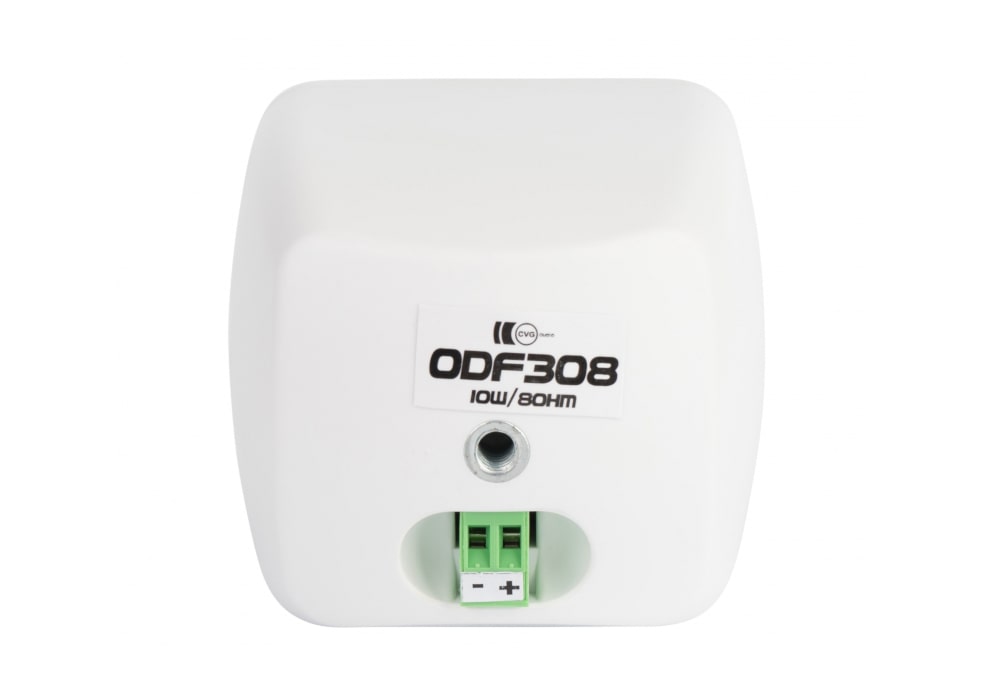 CVGaudio ODF308W — низкоомные акустические системы, импеданс – 8 ohm. RMS мощность – 10W. Для систем фонового звука этой мощности более чем достаточно. Данная модель широкополосная, то есть для воспроизведения всех доступных для нее звуковых частот используется один динамик. Диффузор данного динамика изготовлен из плотной легкой целлюлозы, гибкий подвес из специальной пластичной резины. Т