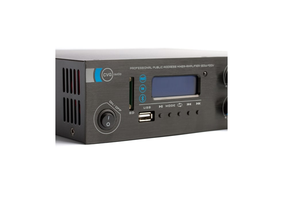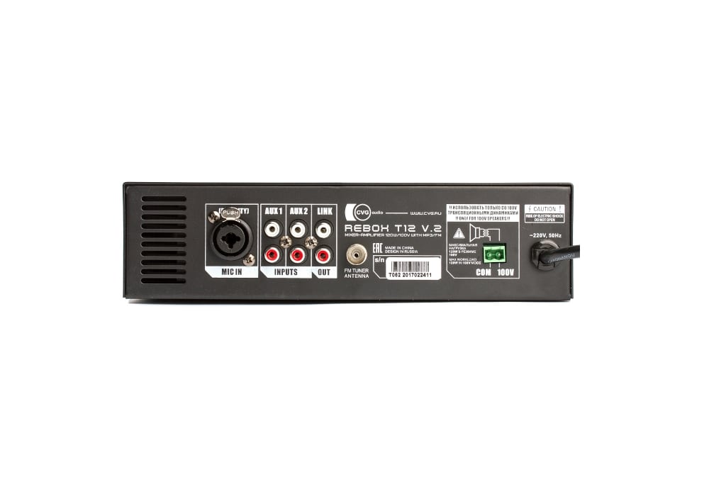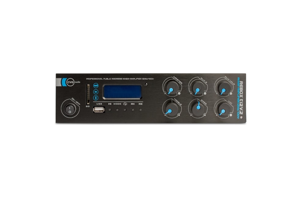 CVGaudio ReBox T12 – профессиональный микшер-усилитель с встроенным MP3 / FM / Bluetooth модулем для систем трансляции фоновой музыки и речевого оповещения. Благодаря своему миниатюрному размеру и продуманной эргономике CVGaudio ReBox T12 — уникальное в своем формате устройством. Он может использоваться как настольное устройство или устанавливаться на стену с помощью кронштейнов, входящих в комплект поставки усилителя.