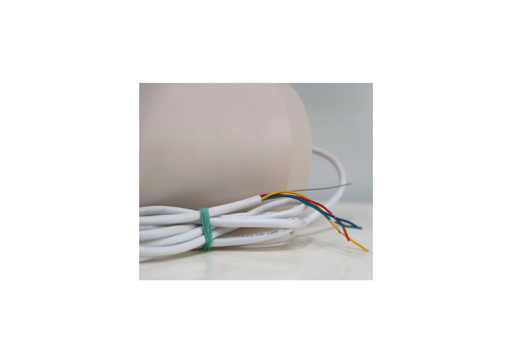 Кабельный вывод в защитной изоляции имеет длину 1,85 метра и усиливающий трос, за который акустическая система подвешивается к потолку. Также в комплект входит карабин и пластиковый фиксатор для кабеля.