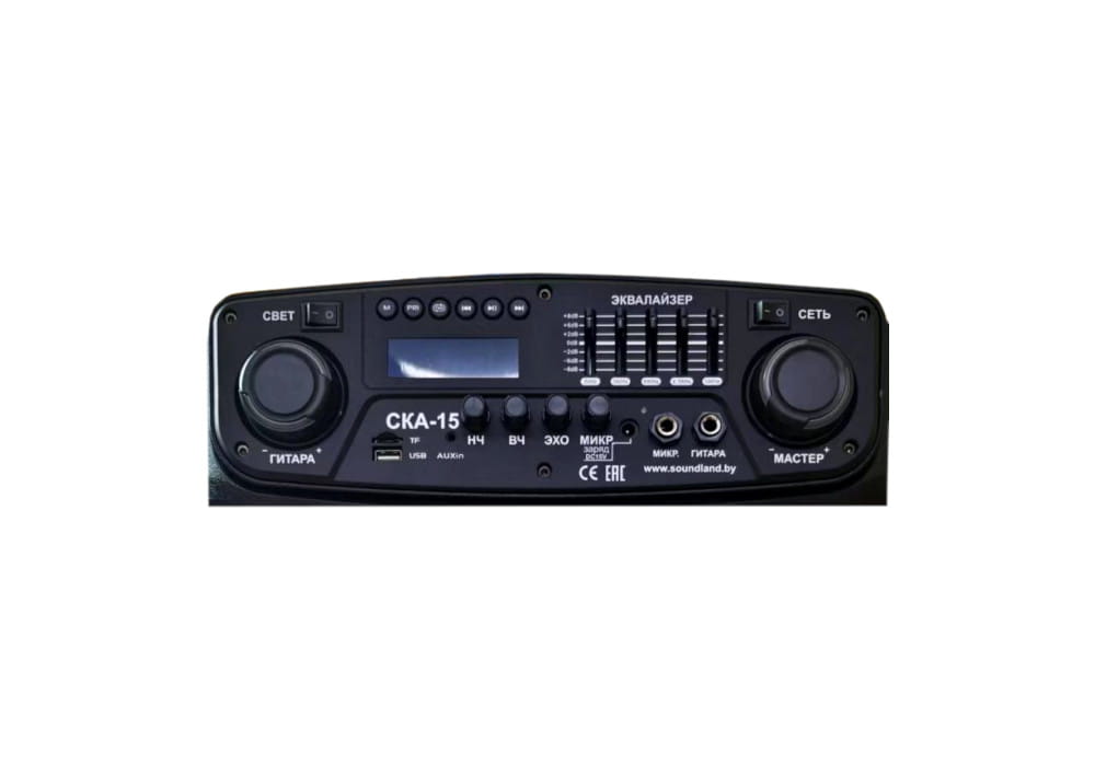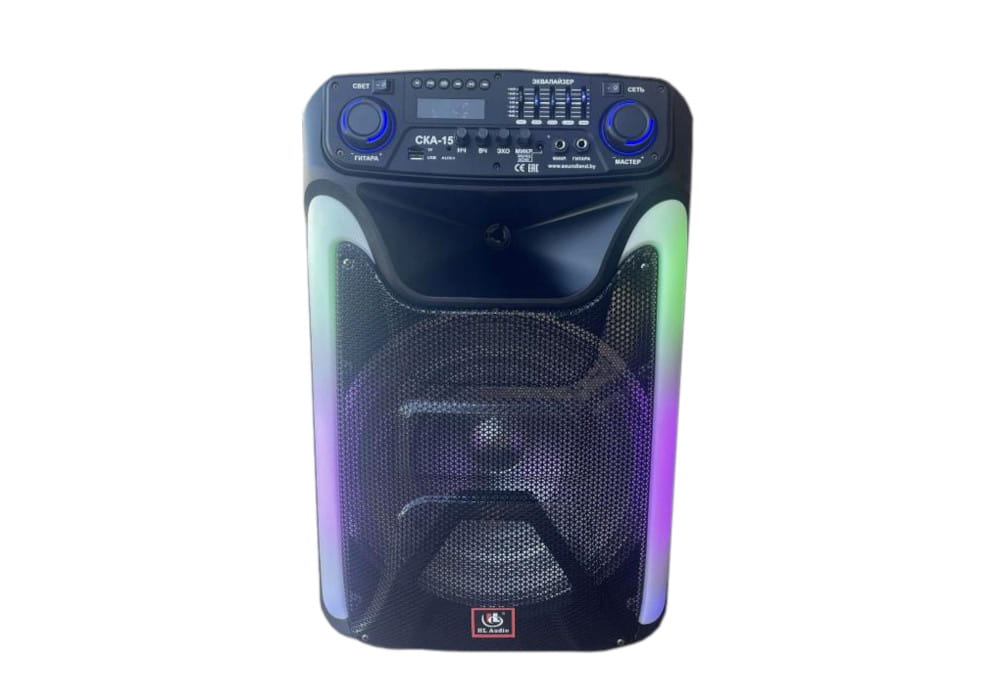 Модель CKA-15 отлично подойдет и для корпоративов на природе, семейного отдыха. На корпусе колонки есть нарядная RGB LED подсветка для позитивного настроения. Благодаря наличию гитарного входа эта система может стать верным спутником вокалиста, выступающего с музыкальным инструментом.