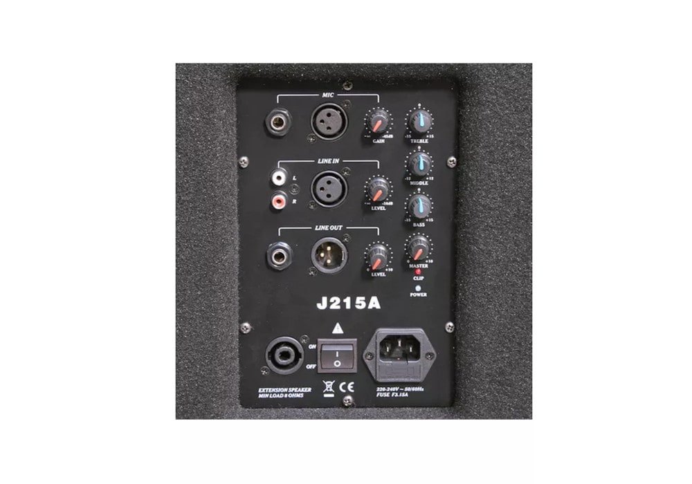 HL Audio J215A — 2-полосная активная акустическая система с корпусом из фанеры. J215A обладает 15-дюймовым вуфером и мощностью 250 Вт. Эта колонка от бренда HL Audio имеет микрофонный и линейный выходы.