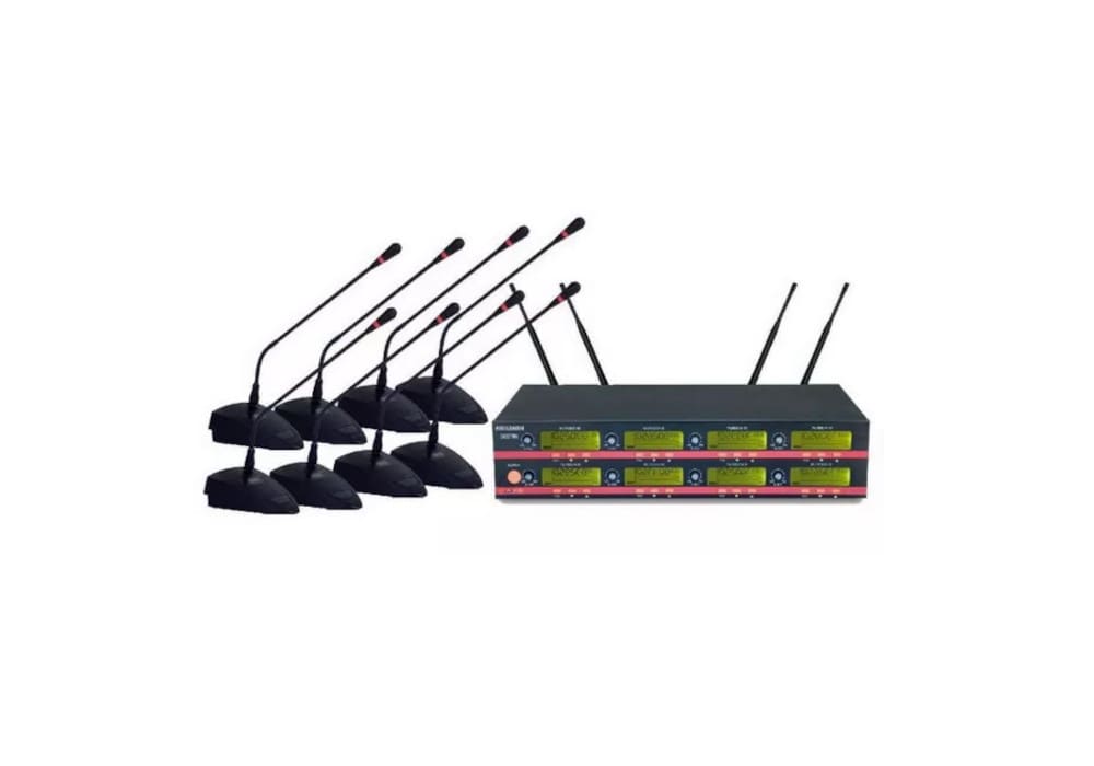 HL Audio K8008 — конференц-система из 8 настольных микрофонов и ресивера с регулировкой громкости и частоты приема сигнала. K8008 — оптимальный вариант для оборудования конференц-залов.