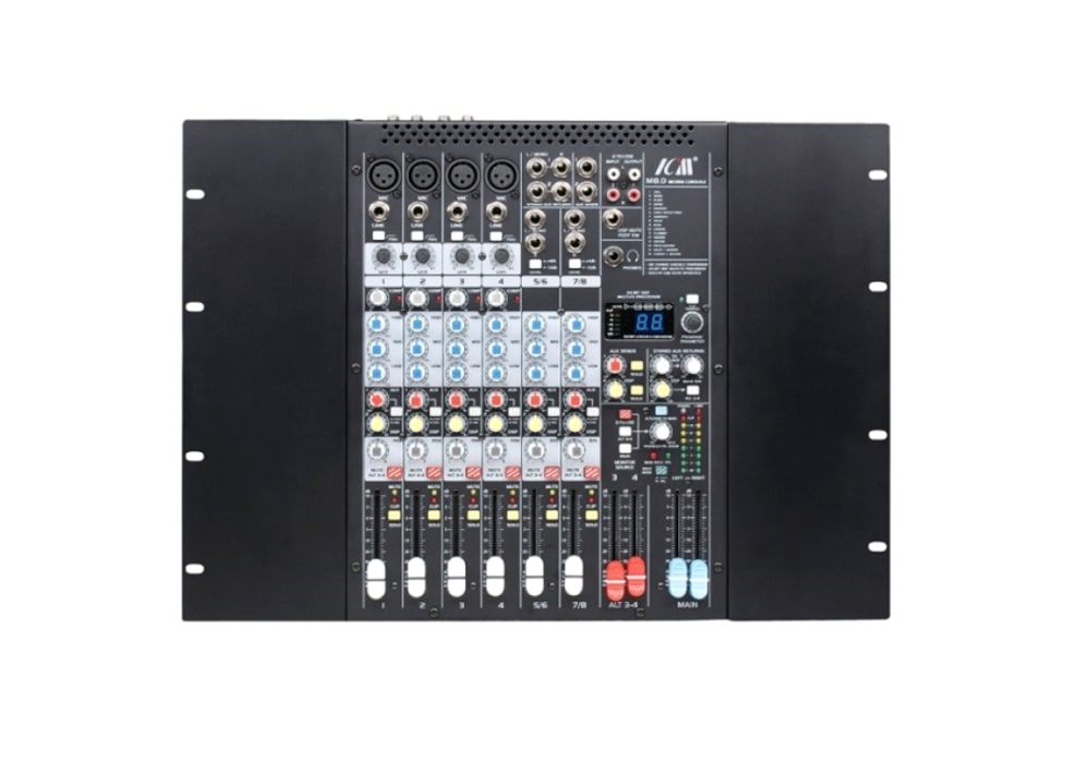 ICM M8.0 — аналоговый 8-канальный микшерный пульт с процессором эффектов, USB/аудио интерфейсом для прямого подключения к компьютеру. M8.0 от ICM является микшером премиум-класса со сверхнизким уровнем шума и большим динамическим диапазоном. Устройство обладает микрофонными предусилителями высокого качества V+Z с фантомным питанием. Встроенный 3-полосный эквалайзер с полупараметрической средней полосой обеспечивает теплое и музыкальное звучание. Студийный процессор эффектов предлагает 16 редактируемых пресетов. В их числе реверберация, хорус, фленджер, задержка, изменение высоты тона, мультиэффекты. Имеется функция Tap и возможность сохранять пользовательские настройки параметров.