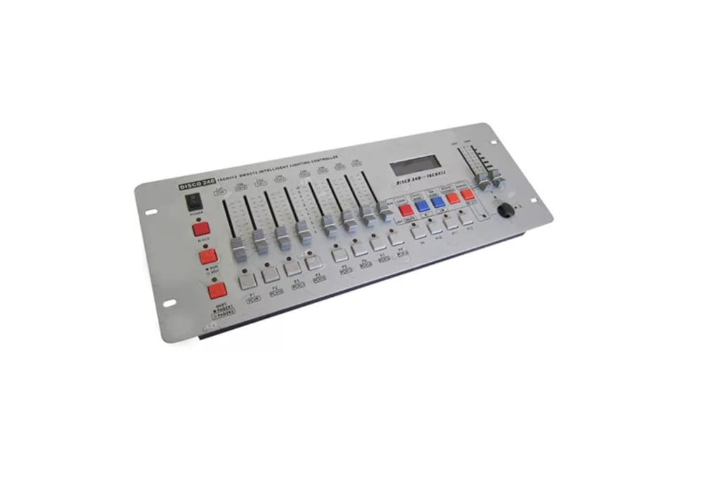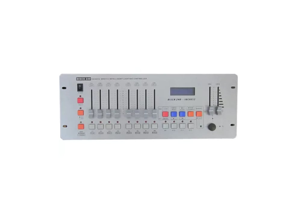 Infinity DMX-240 — универсальный и многофункциональный DMX-512 контроллер на 240 каналов. DMX-240 позволяет управлять до 24 световых приборов, по 16 каналов на каждом. Имеет 30 банков по 8 сцен, оснащен управлением дымом, стробоскопами и MIDI-коннектором. Среди других функций – автозапуск и синхронизация «BEAT» по звуку, MIDI совместимость.