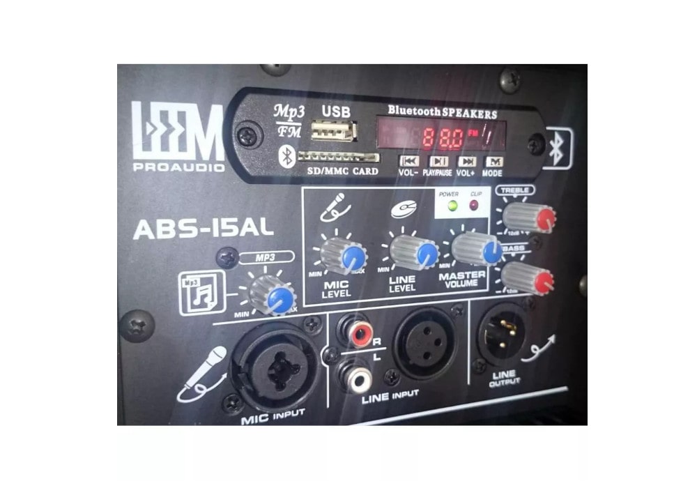 Leem ABS-15AL — акустическая система активная мощностью 300 Вт со светодиодной подсветкой. Это отличный вариант для кафе, ресторанов, малых актовых залов. ABS-15AL от Leem оборудована всем необходимым для проведения различных мероприятий. Имеется USB вход, слот для карты памяти SD/MMC и встроенный MP3 плеер с отдельным регулятором уровня. Кроме того, есть встроенное FM-радио, Bluetooth для беспроводного воспроизведения музыки с различных девайсов.