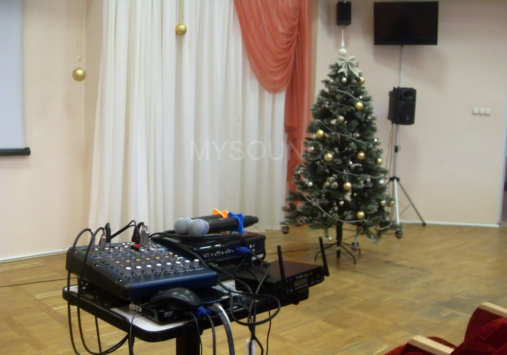 Звуковое оборудование в этом проекте необходимо для проведения совещаний с медицинскими работниками, лекций, конференций. Кроме того, в зале будут проводиться торжественные мероприятия и праздники для сотрудников учреждения. Поэтому при выборе аппаратуры учитывалась возможность исполнения вокальных номеров, сопровождения мультимедийного контента.
