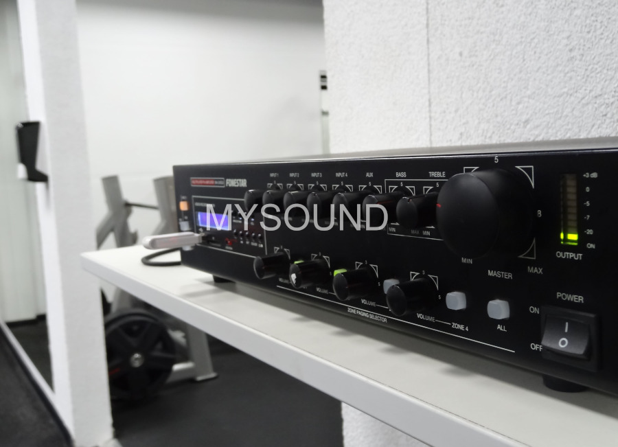 Кроме того, были выполнены работы по электромонтажу. В целом озвучили шесть помещений: залы для единоборств, для групповых тренировок, для детских тренировок, а также три тренажерных зала. Смонтировано как звуковое оборудование фитнес-центра, так и приобретенное в mysound.by.
