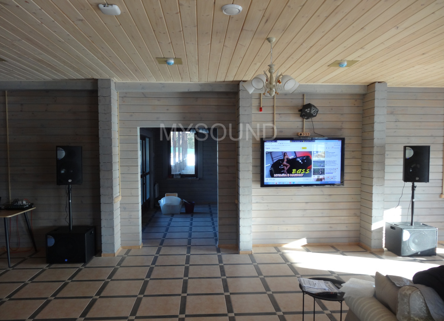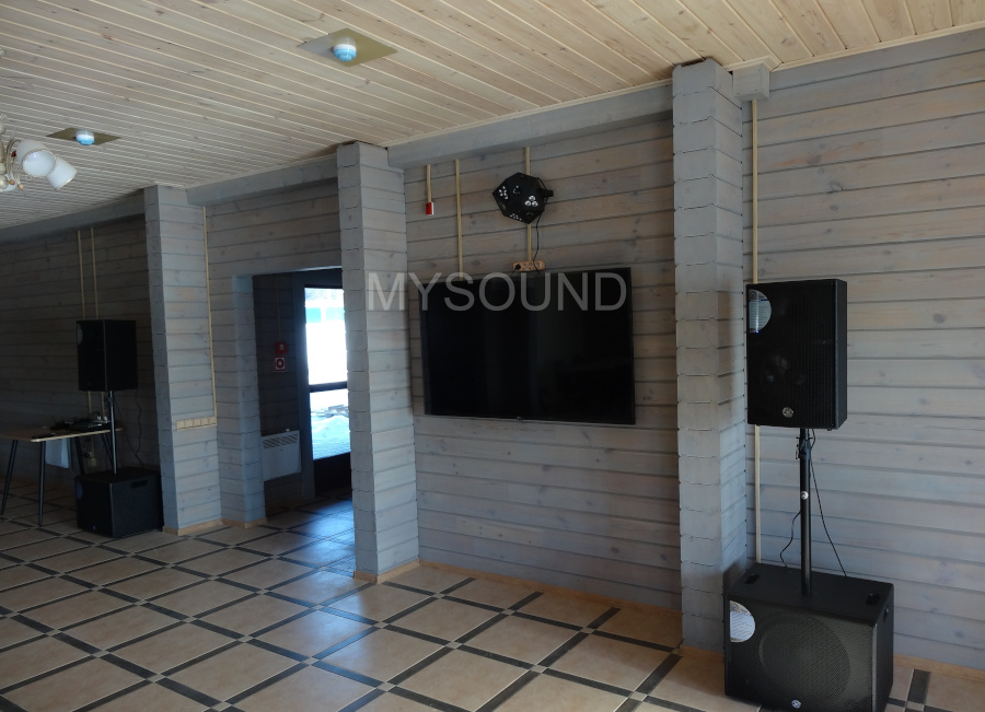В банкетном зале усадебного комплекса на берегу озера будут проводиться различные мероприятия. Это свадьбы, юбилеи, другие торжественные мероприятия и вечеринки. Мощные сабвуферы в предложенном комплекте и световые приборы позволят проводить дискотеки. Гости смогут спеть караоке. Также есть световые прожекторы для декоративной подсветки композиций из цветов и шаров. Комплексное оснащение залов для мероприятий — специализация mysound.by.