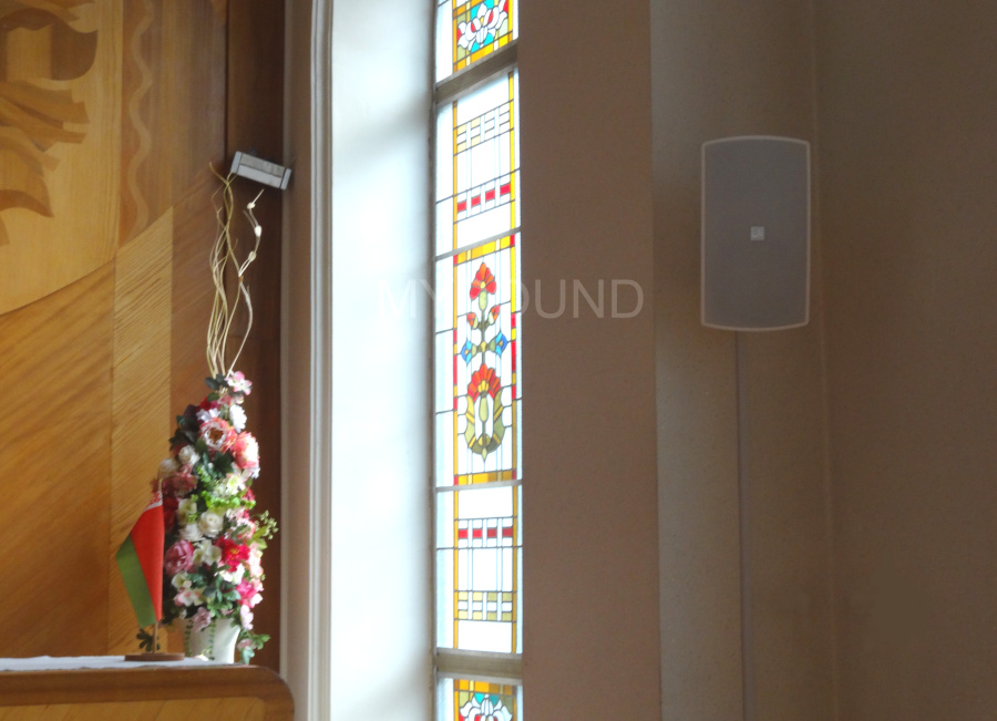 В ЗАГС поставили и смонтировали звуковое оборудование: трансляционные колонки Audac WX302/W (10 шт.), Audac ATEO6/W (2 шт.), усилитель-микшер Audac COM24MK2, плеер Audac CMP30, регулятор громкости Audac VC3102/W.