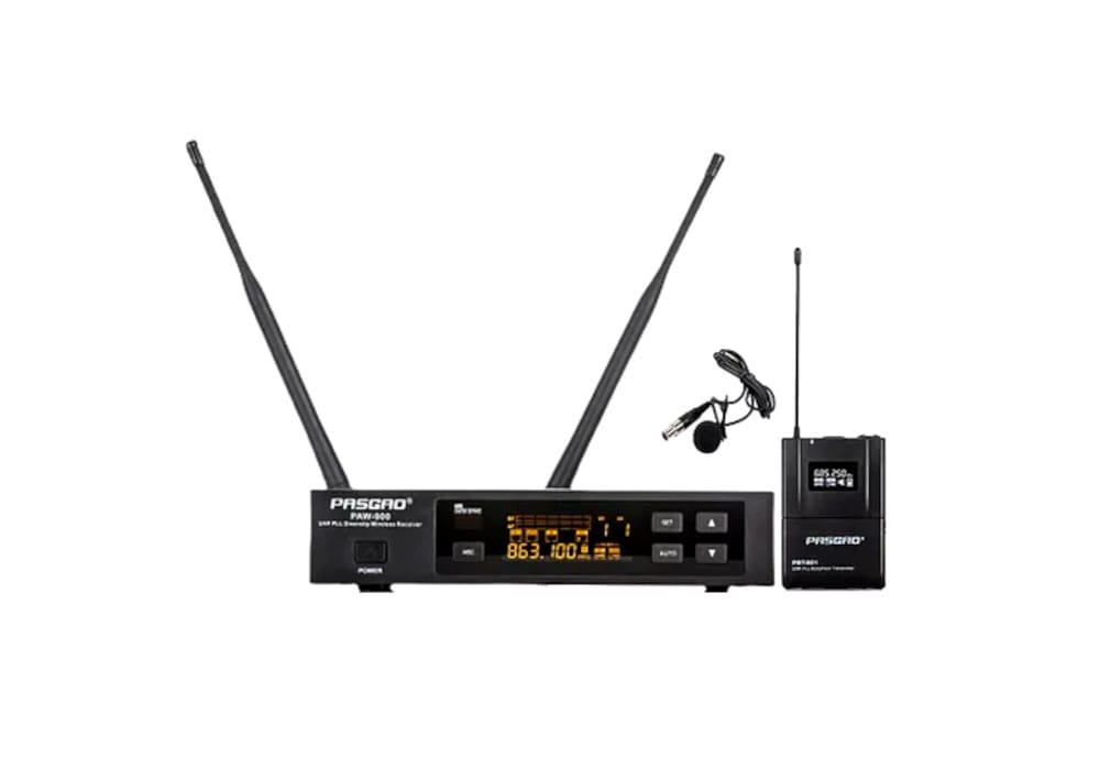 Pasgao PAW-900 Rx_PBT-801 TxB — одноканальная радиосистема с петличным микрофоном и поясным передатчиком. Эта модель часто  пользуется спросом для озвучивания в церквях, костёлах, а также для артистов в театральных постановках. PAW-900 Rx_PBT-801 TxB имеет 192 частотных канала с функцией автоматического поиска свободных каналов, синхронизации данных по инфракрасному порту. Предусмотрено регулируемое шумоподавление.