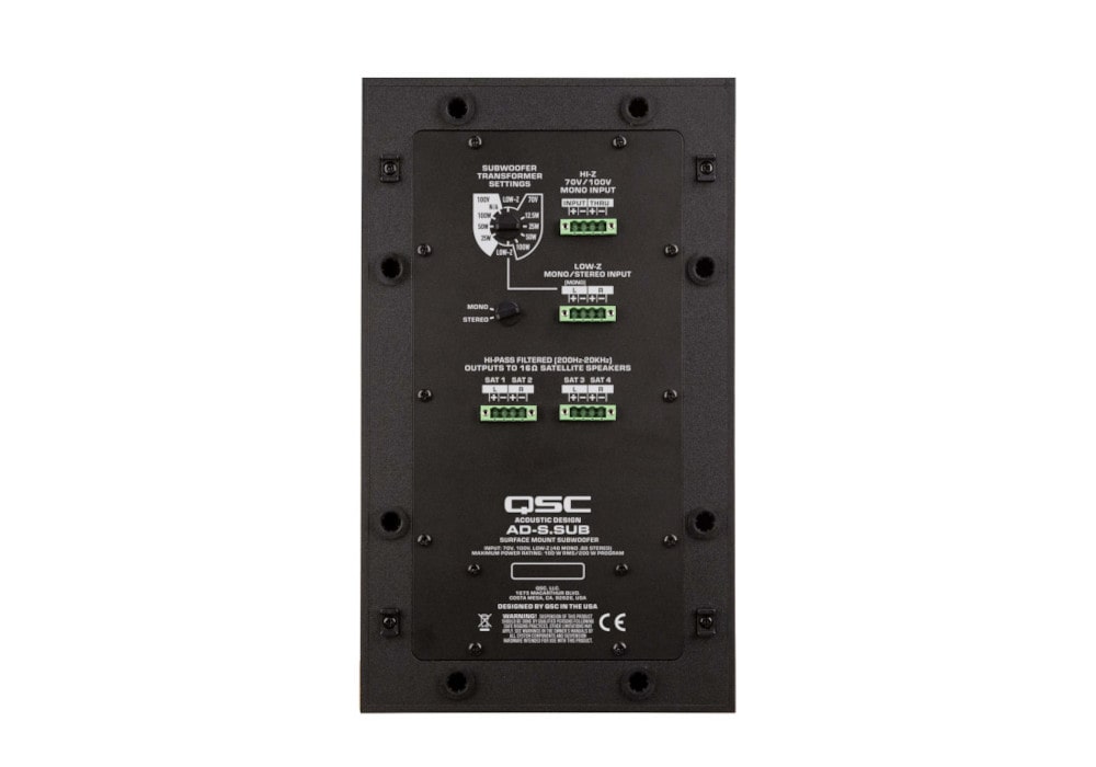 QSC AD-S.SUB-BK является частью акустического решения AcousticDesign SUB/SAT. Сочетается с настенной акустической системой QSC AD-S.SAT-BK. Данное решение идеально подходит для фоновой музыки, которая требует глубины и четкости даже при небольшой громкости.