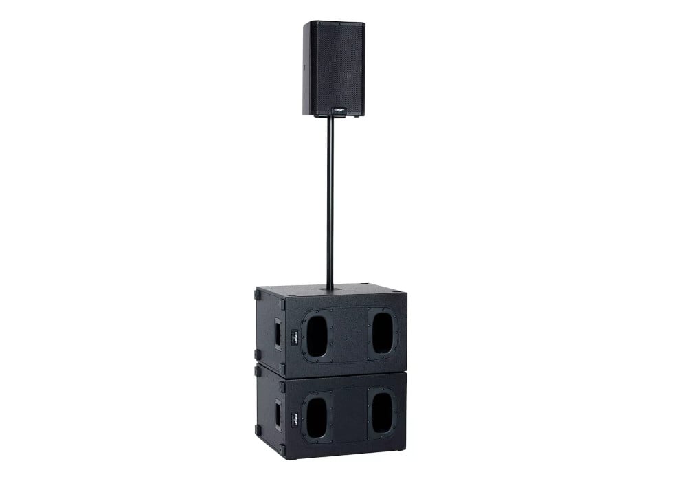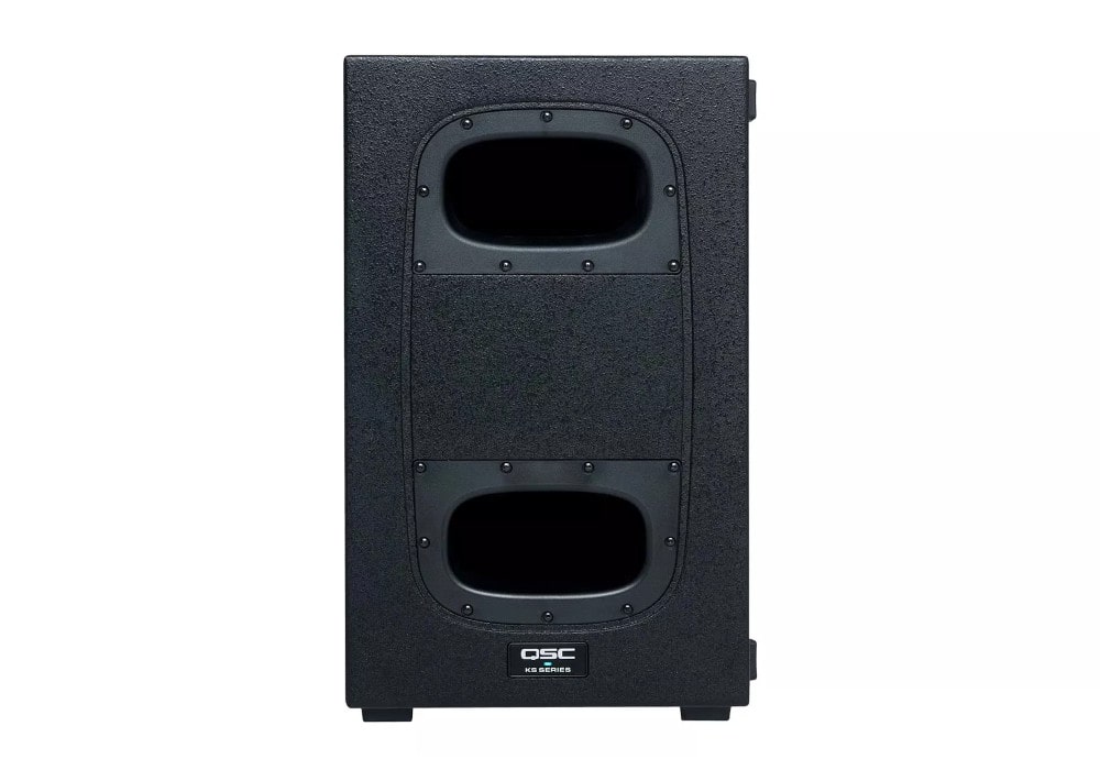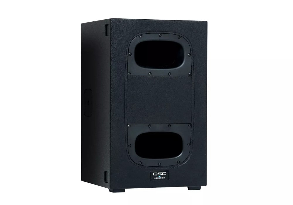QSC KS112 — акустическая система низкочастотная активная (сабвуфер) в корпусе из фанеры с 12-дюймовым динамиком мощностью 2000 Вт. Оснащена встроенным цифровым усилителем класса D. Имеются также встроенные колеса, приемное отверстие M20. Кроме того, в комплекте есть стойка для установки сателлита.