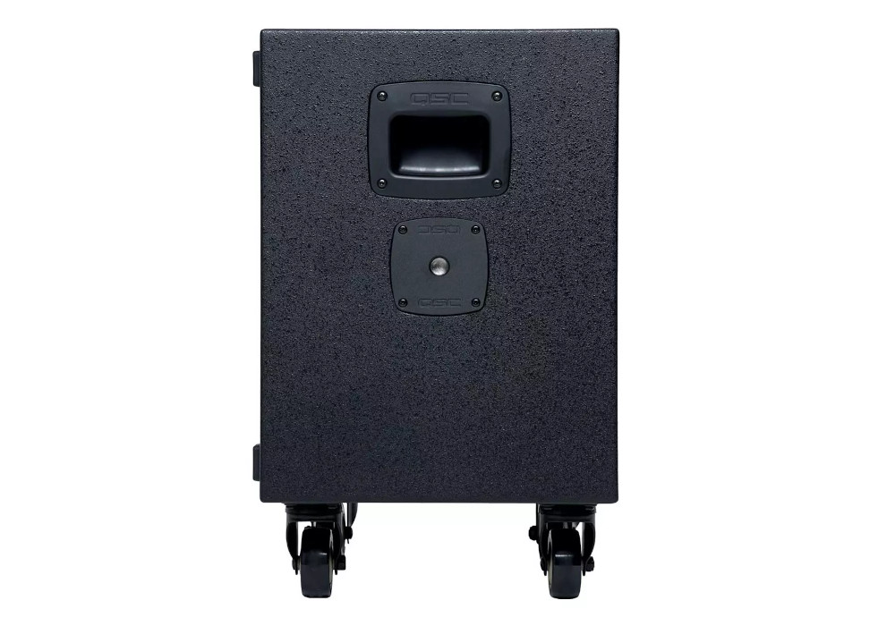Сабвуфер QSC KS112 можно установить в горизонтальном и вертикальном положении, отверстиями с резьбой M20 для спикеров/сателлитов. Корпус из 15-мм фанеры имеет прочное покрытие для долговечности и повышенной износостойкости.