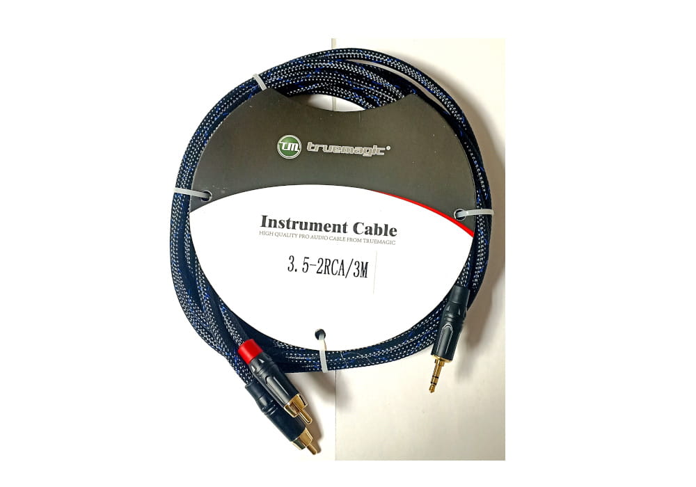 True Magic 3.5-2RCA 3m — высококачественный готовый кабель с разъёмами 3,5 Jack stereo — 2 x RCA. Им можно подключить источник звукового сигнала (смартфон, аудиоплеер, ноутбук) к микшерному пульту, активной акустической системе, трансляционному усилителя.