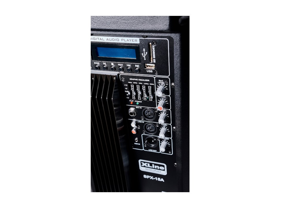 Xline SPX-15A — профессиональная 2-полосная активная акустическая система общей мощностью RMS 350 Вт (300 + 50 Вт). SPX-15A работает в режиме Bi-Amp, что гарантирует чистое и мощное звучание. В основе этой модели от Xline — 15″ низкочастотный динамик и 1,75″ высокочастотный титановый драйвер. Они обеспечивают воспроизведение в частотном диапазоне 45-20 000 Гц и максимальное звуковое давление 124 дБ.