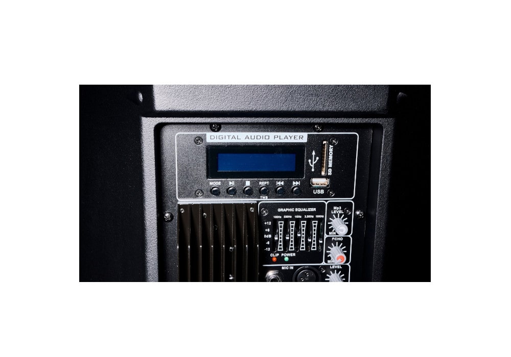 - Активная двухполосная акустическая система с USB/SD/Bluetooth/FM, со встроенным 5-полосным эквалайзером и функцией TWS